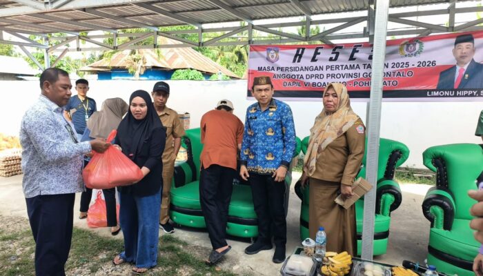 IKRARnews.ID, Pohuwato –Dalam momentum bersejarah Hari Sumpah Pemuda, Selasa (28/10/2025), anggota DPRD Provinsi Gorontalo, Limonu Hippy, melaksanakan kegiatan reses sekaligus penyerahan 250 paket bantuan pangan kepada masyarakat Desa Buntulia Jaya, Kecamatan Duhiadaa, dan Desa Sipatana, Kecamatan Buntulia.