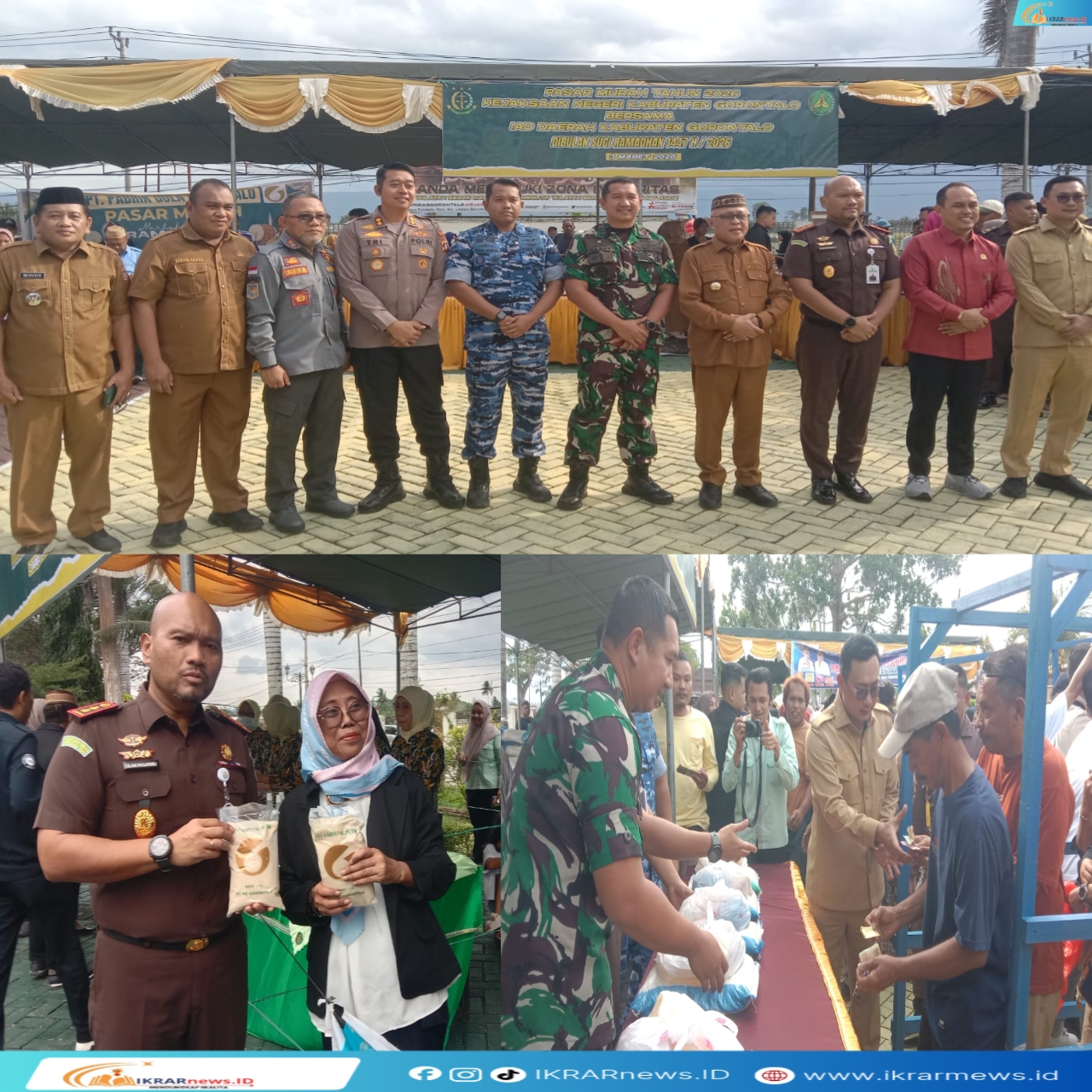 IKRARnews.ID, Kabupaten Gorontalo – Pemerintah Kabupaten Gorontalo kembali menunjukkan komitmennya dalam menjaga stabilitas harga kebutuhan pokok dan menekan laju inflasi daerah melalui pelaksanaan Pasar Murah Bersubsidi Tahun 2026 yang digelar di halaman Kantor Kejaksaan Negeri Kabupaten Gorontalo, Desa Pone, Kecamatan Limboto Barat, Selasa (3/3/2026).