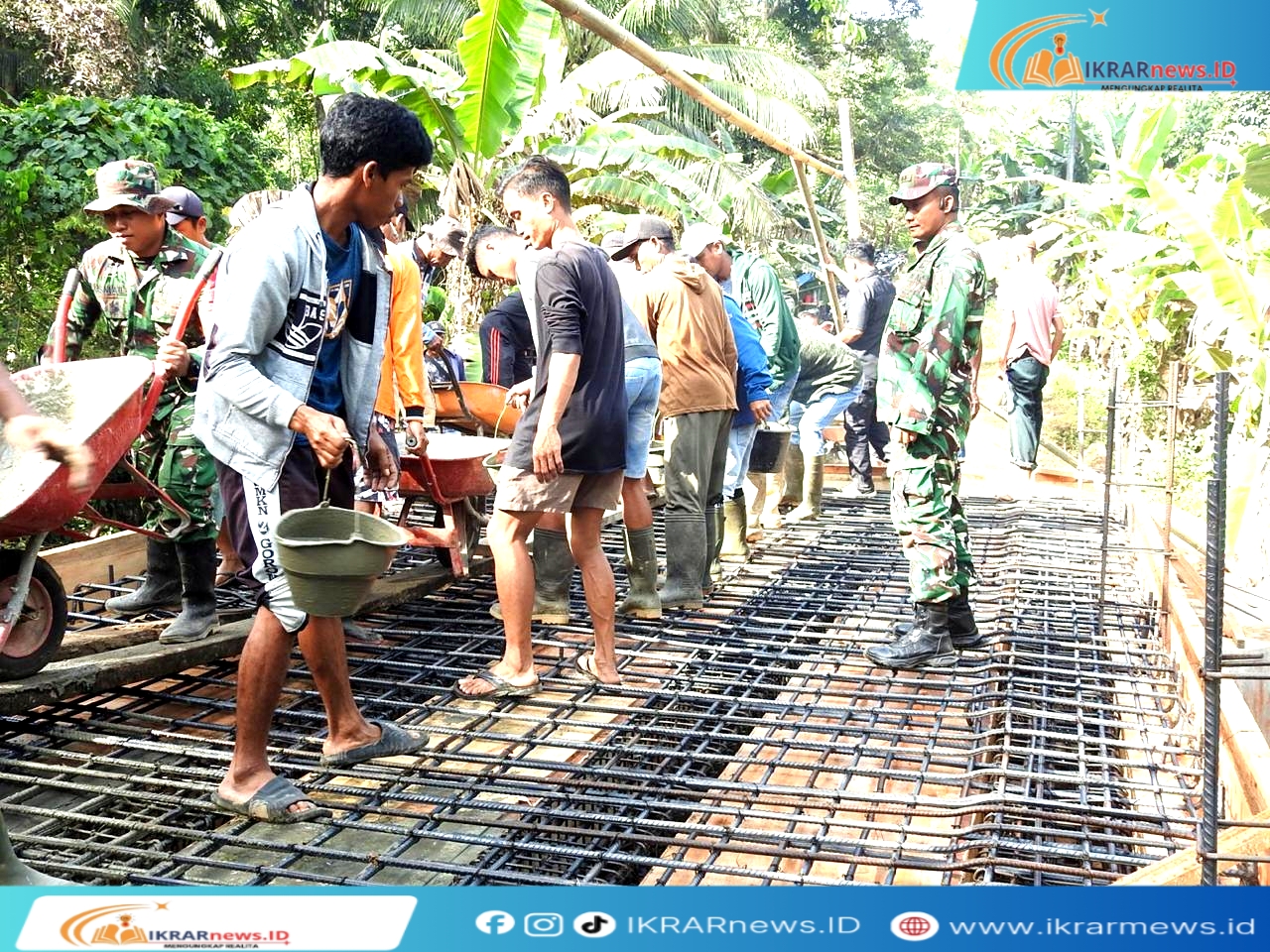 IKRARnews.ID, Gorontalo Utara – Komandan Kodim 1314/Gorontalo Utara, Letkol Inf Gembong Yudo Sasongko, S.Sos., M.P.P., memimpin langsung dan memastikan rampungnya pekerjaan pengecoran jembatan beton yang menghubungkan Desa Imana dan Desa Wapalo, Kecamatan Atinggola, pada Rabu (8/4/2026).