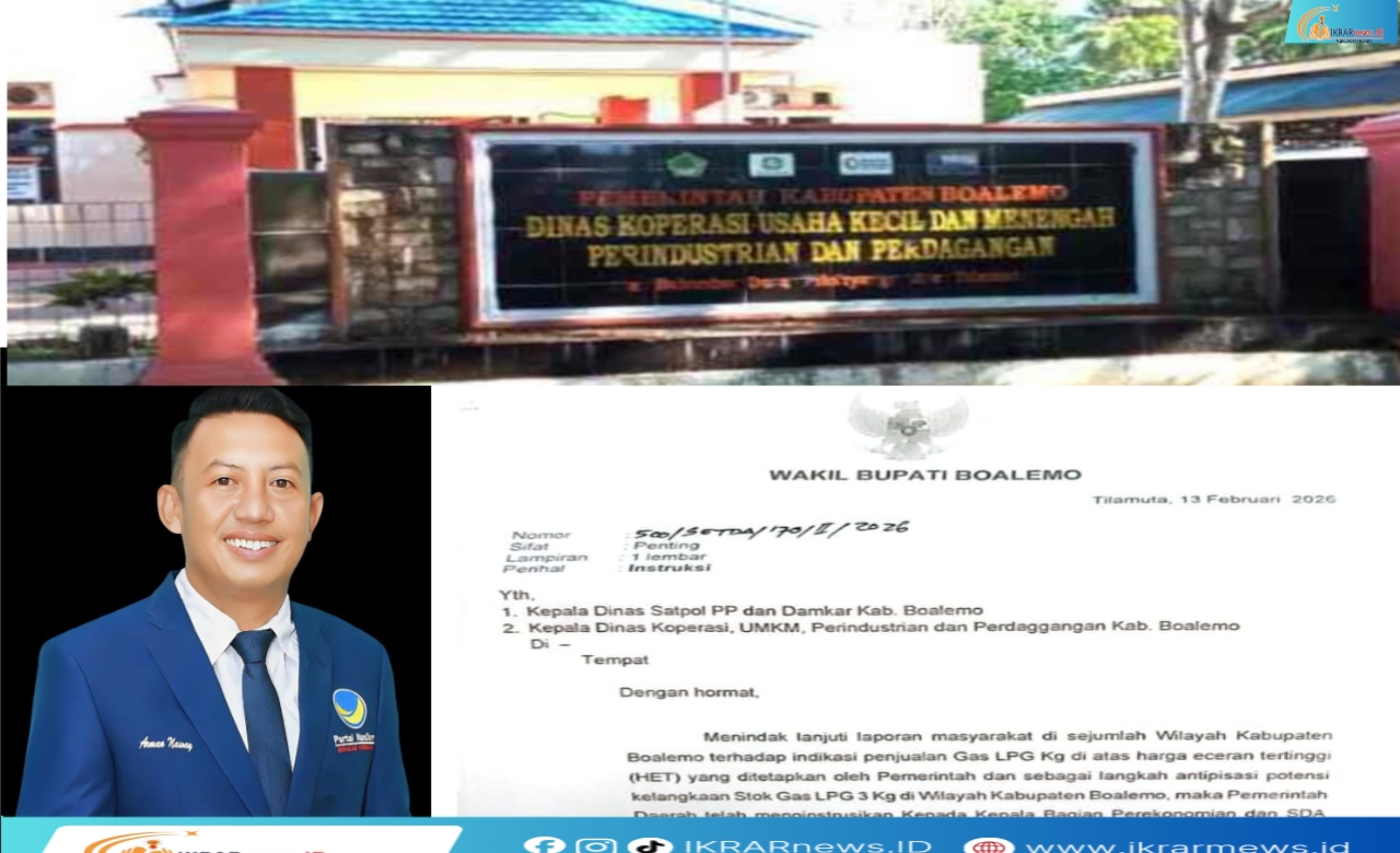 Instruksi tersebut tertuang dalam surat Pemerintah Daerah Nomor 500/Setda/170/II/2026 yang memerintahkan Koperindag, Satpol PP dan Damkar, serta Bagian Perekonomian dan SDA Setda Boalemo turun langsung ke agen, pangkalan, hingga pengecer LPG 3 Kg. Sidak difokuskan pada pengecekan harga jual sesuai HET serta antisipasi potensi kelangkaan stok.
