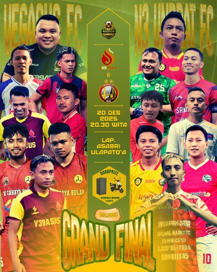 IKRARnews.ID, KABUPATEN GORONTALO – Malam yang dinanti akhirnya tiba. Turnamen mini soccer terbesar di wilayah ini, YPII Cup 2025, akan menggelar partai puncak yang mempertemukan dua tim terkuat. V39ASUS akan menjamu UMPRAT FC dalam laga final penuh gengsi pada pukul 20.30 WITA nanti malam, Sabtu (20/12/2025). di Lapangan Asabri, Desa Ulapato A Kabupaten Gorontalo. Pertarungan akan memperebutkan gelar juara dan posisi runner-up ini dijamin memacu adrenalin.