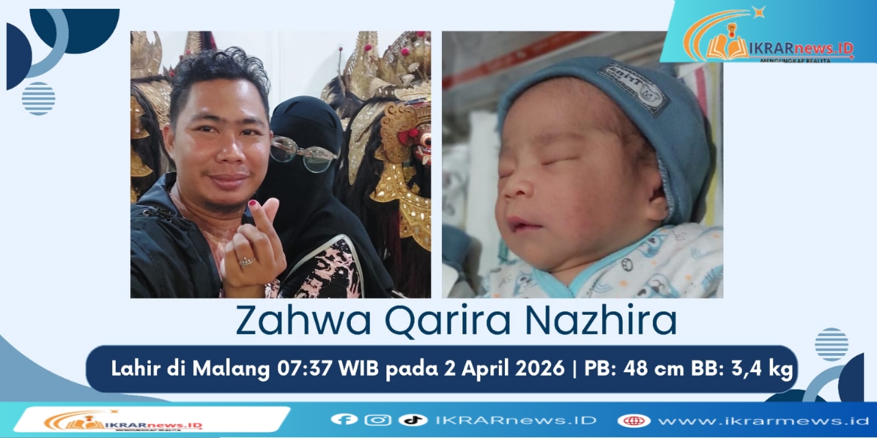 IKRARnews.ID, Malang – Kabar bahagia datang dari keluarga jurnalis muda sekaligus trainer, Andre Hariyanto. Istrinya, Aisyah Putri Widodo, telah melahirkan seorang anak perempuan di Rumah Sakit Wafa Husada, Kecamatan Kepanjen, Kabupaten Malang, Jawa Timur.