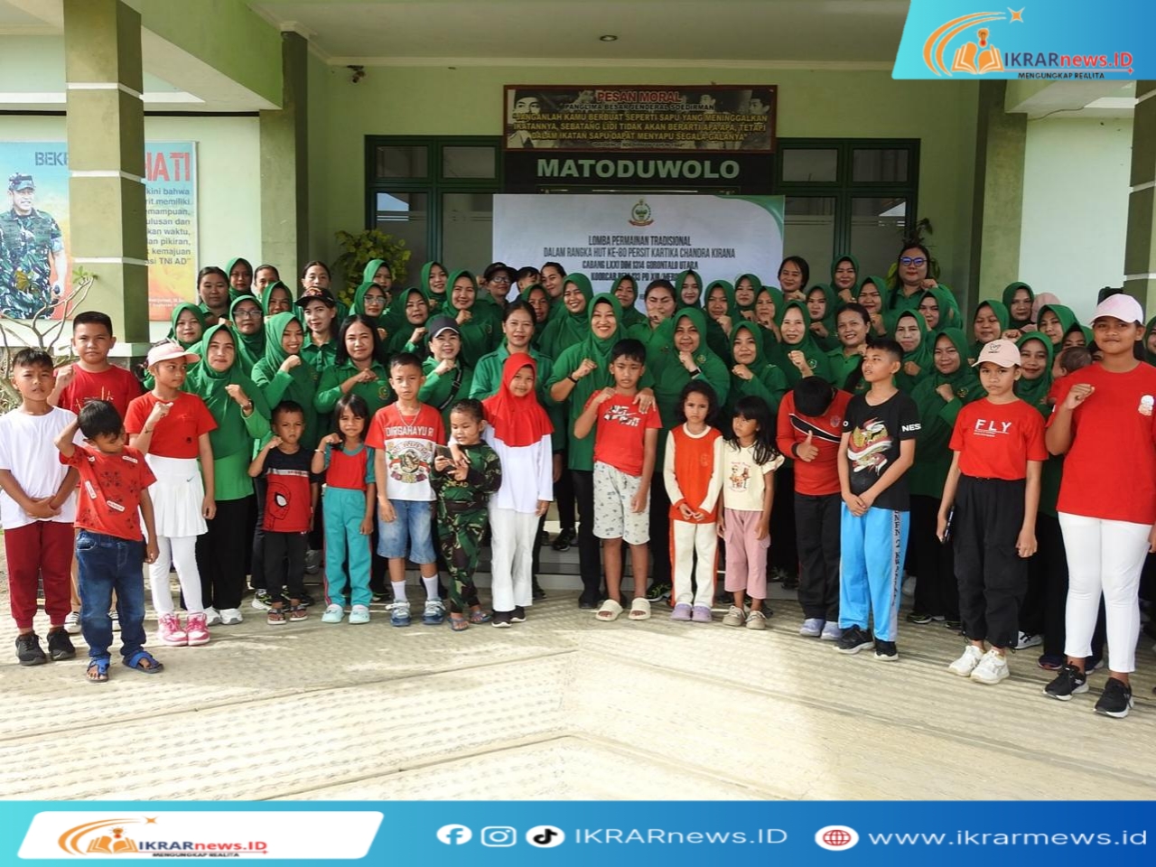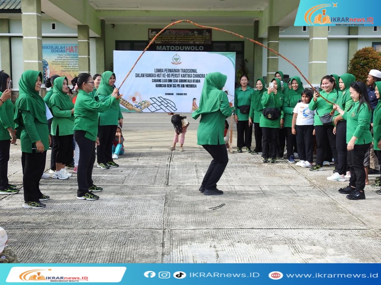IKRARnews.ID, Gorontalo Utara — Dalam rangka memperingati Hari Ulang Tahun (HUT) ke-80 Persit Kartika Chandra Kirana, jajaran Persit KCK Cabang LXXI Kodim 1314/Gorontalo Utara menggelar pertandingan permainan tradisional di Makodim 1314/Gorut, Desa Botumobungo, Kecamatan Kwandang, Kabupaten Gorontalo Utara, Jumat (13/2/2026).