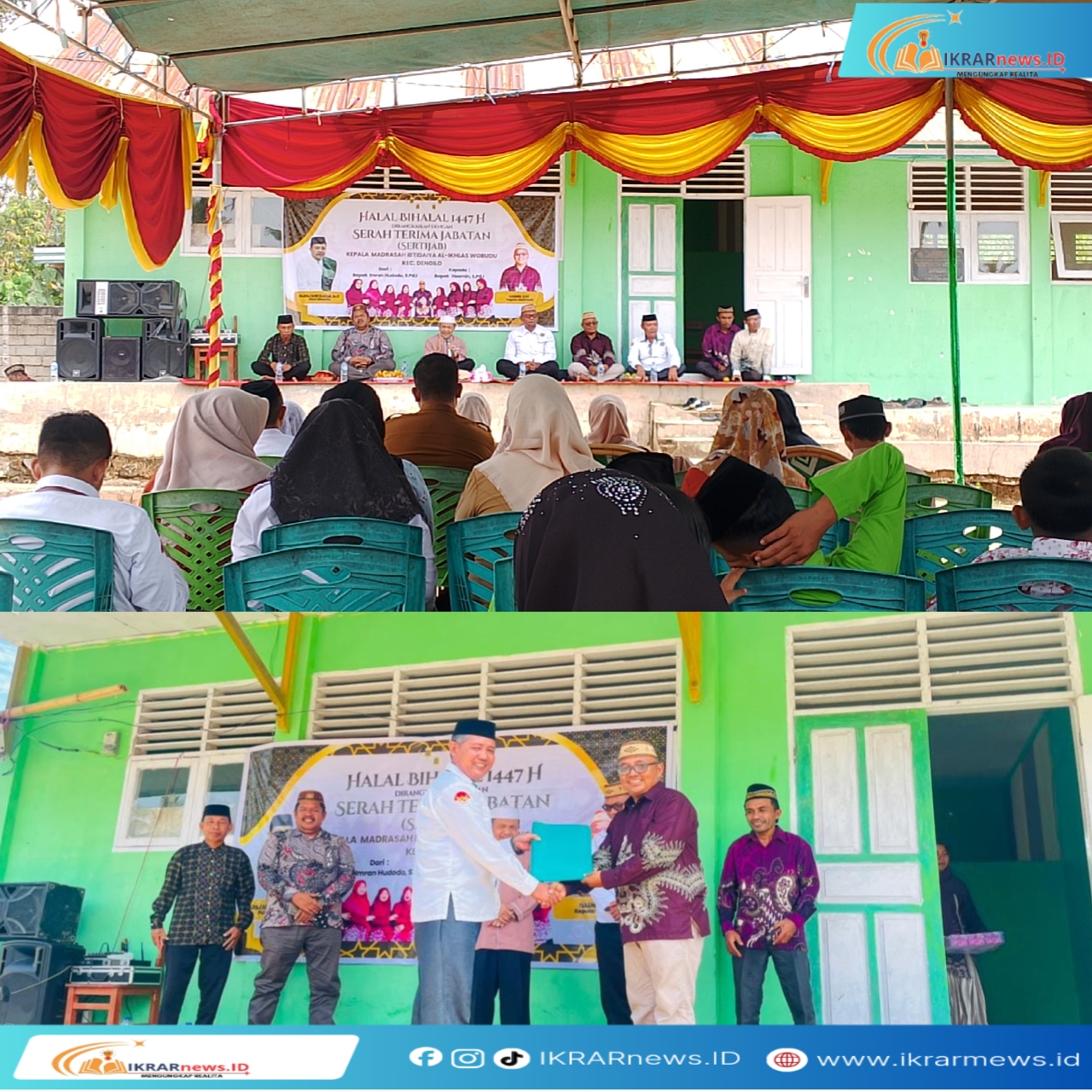 IKRARnews.ID, POHUWATO – Madrasah Ibtidaiya Swasta Al-Ikhlas Wobudu Desa Padengo Kec. Dengilo melaksanakan Halal Bihalal 1447 H yang dirangkaikan dengan Serah Terima Jabatan Kepala Madarasah, Kepala Madarasah Sebelumnya Imran Hudodo, S.Pd.I dan Kepala Madrasah Sekarang Hasmin, S.Pd.I