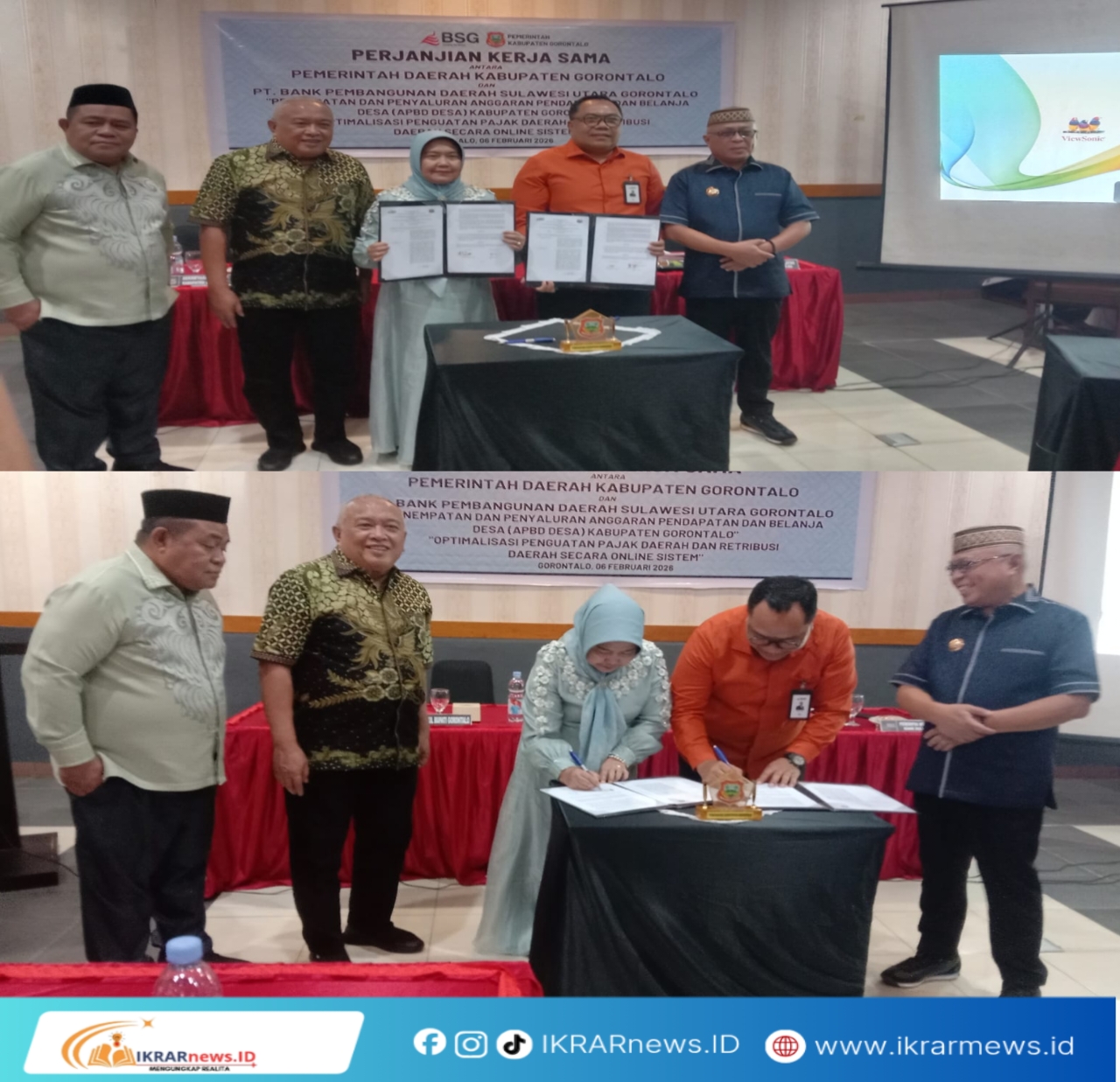 IKRARnews.ID, LIMBOTO — Pemerintah Kabupaten Gorontalo resmi menandatangani Perjanjian Kerja Sama (PKS) dengan PT Bank Pembangunan Daerah Sulawesi Utara Gorontalo (Bank SulutGo) Cabang Limboto Tahun 2026. Kegiatan tersebut berlangsung di Meeting Room Rumah Makan Orasawa Dulohupa, Limboto, Jumat (6/2/2026).