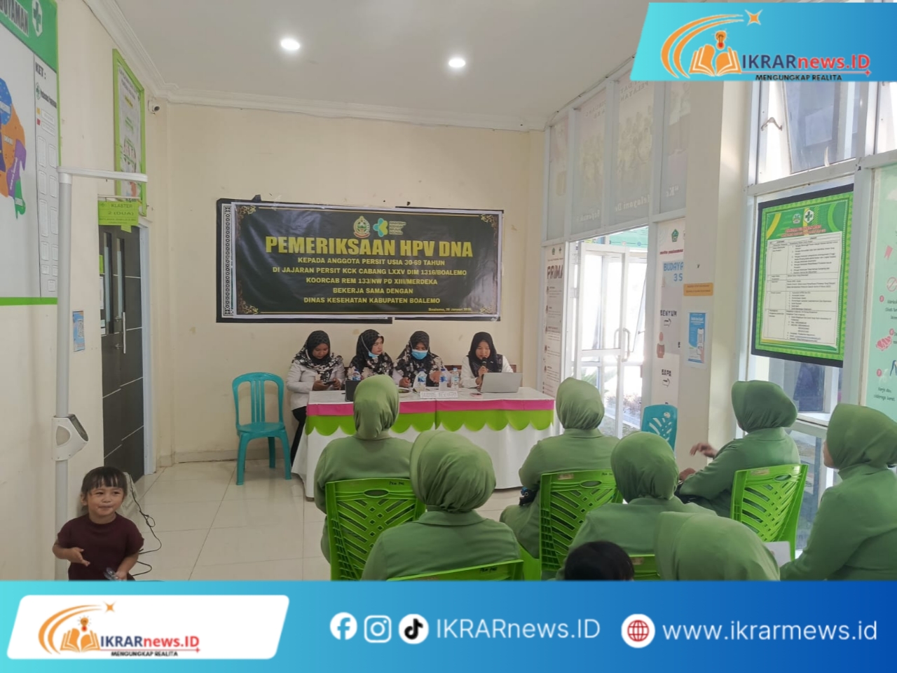 IKRARnews.ID, BOALEMO — Komitmen menjaga kesehatan perempuan kembali ditunjukkan Persit Kartika Chandra Kirana (KCK) Koramil 1316-02 Paguyaman. Puluhan anggota Persit mengikuti pemeriksaan HPV DNA sebagai langkah deteksi dini kanker serviks yang dilaksanakan di Puskesmas Paguyaman, Desa Wonggahu, Kecamatan Paguyaman, Kabupaten Boalemo, Provinsi Gorontalo, Rabu (28/1/2026) pagi.