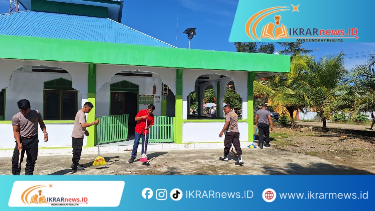 Kegiatan kerja bakti yang dimulai sejak pukul 08.30 WITA tersebut dipimpin langsung oleh Wakil Kepala Polsek Wonosari, Iptu Suryadi, bersama seluruh personel Polsek Wonosari. Dengan penuh semangat kebersamaan, aparat kepolisian turun langsung membersihkan halaman masjid, selokan, serta area sekitar rumah ibadah dari sampah dan kotoran yang berpotensi mengganggu kenyamanan jamaah.