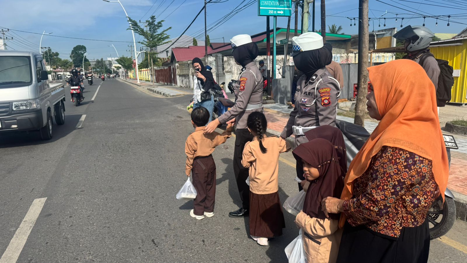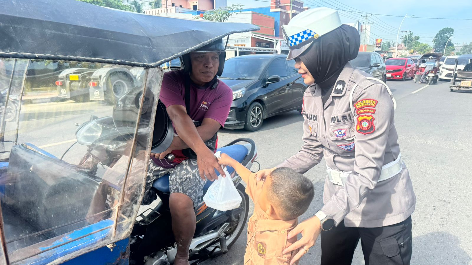 Selain edukasi, Satlantas Polresta Gorontalo Kota juga menyalurkan Jumat Berkah sebagai bentuk kepedulian sosial. Hal ini, menurutnya, merupakan bagian dari pendekatan humanis Polri dalam membangun relasi yang konstruktif dan berkeadaban dengan masyarakat sejak lingkungan pendidikan dasar.