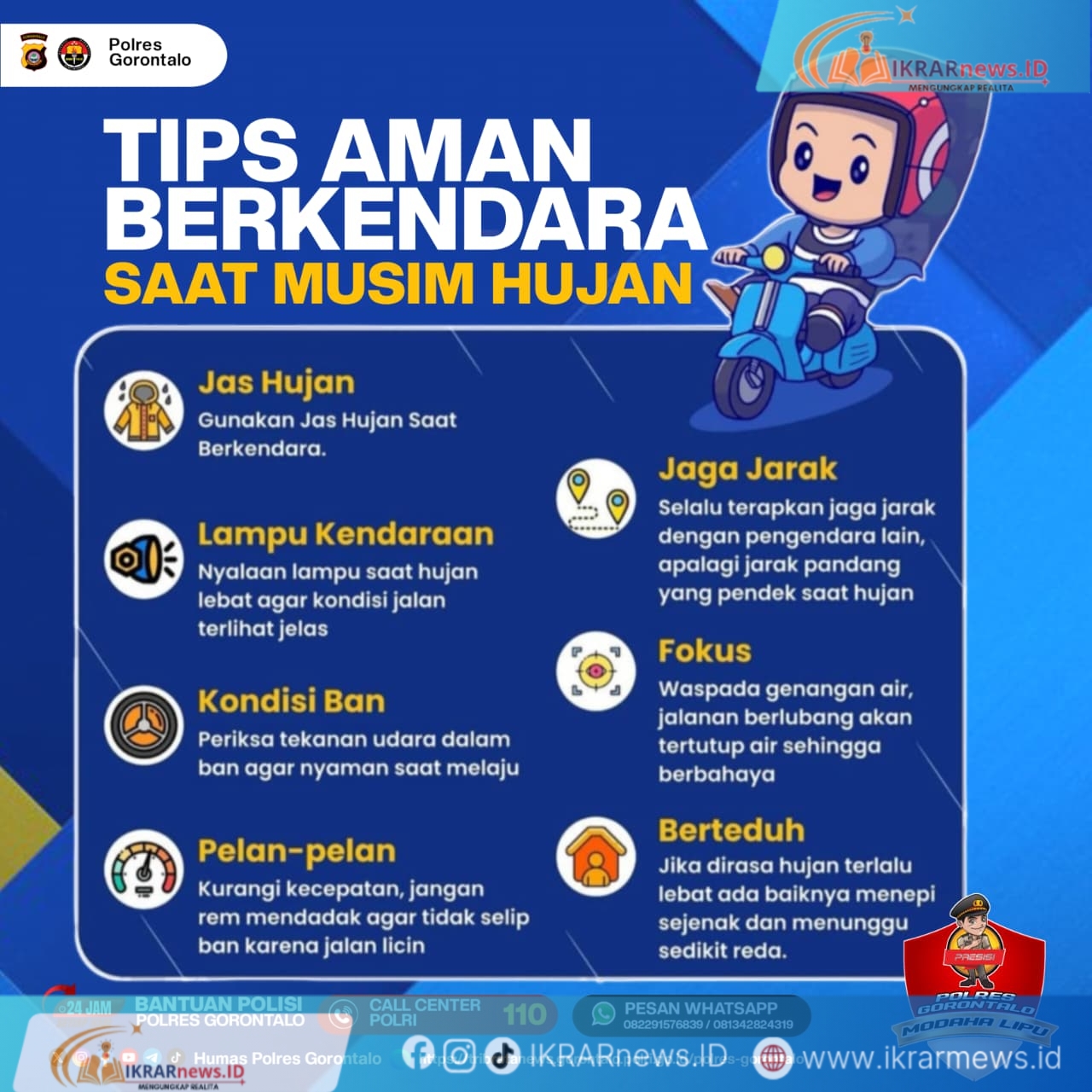IKRARnews.ID, Gorontalo – Memasuki musim penghujan di awal tahun 2026, Satuan Lalu Lintas (Sat Lantas) Polres Gorontalo menyampaikan himbauan resmi bagi seluruh pengguna jalan diwilayah Kabupaten Gorontalo.